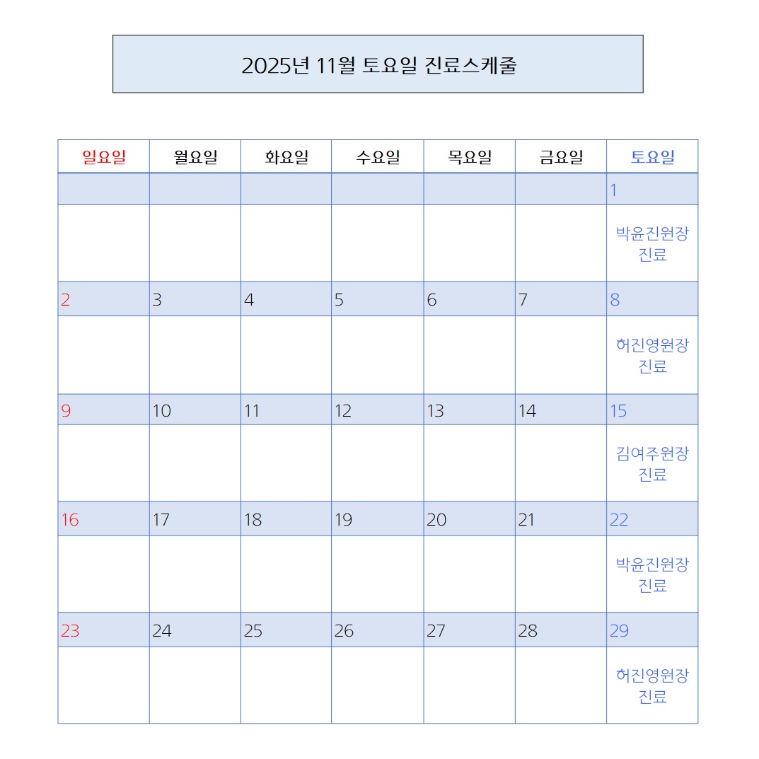 2025년 11월 토요일 및 공휴일 진료 스케줄